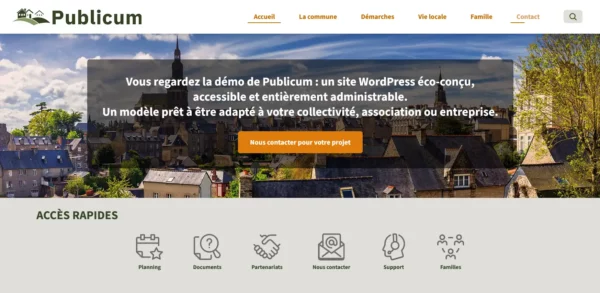 Les communes et structures publiques ont des besoins spécifiques : un site qui reste clair pour les habitants, facile à administrer par les agents, et surtout fiable sur le long terme. Publicum répond à ces attentes en proposant une base solide, sobre et adaptable. Contrairement aux solutions “clé en main” génériques, ce modèle a été construit dès le départ pour l’intérêt général, en tenant compte des contraintes des petites et moyennes collectivités : budget limité, temps restreint, nécessité d’avoir un outil qui “fonctionne vraiment” sans se transformer en charge supplémentaire.